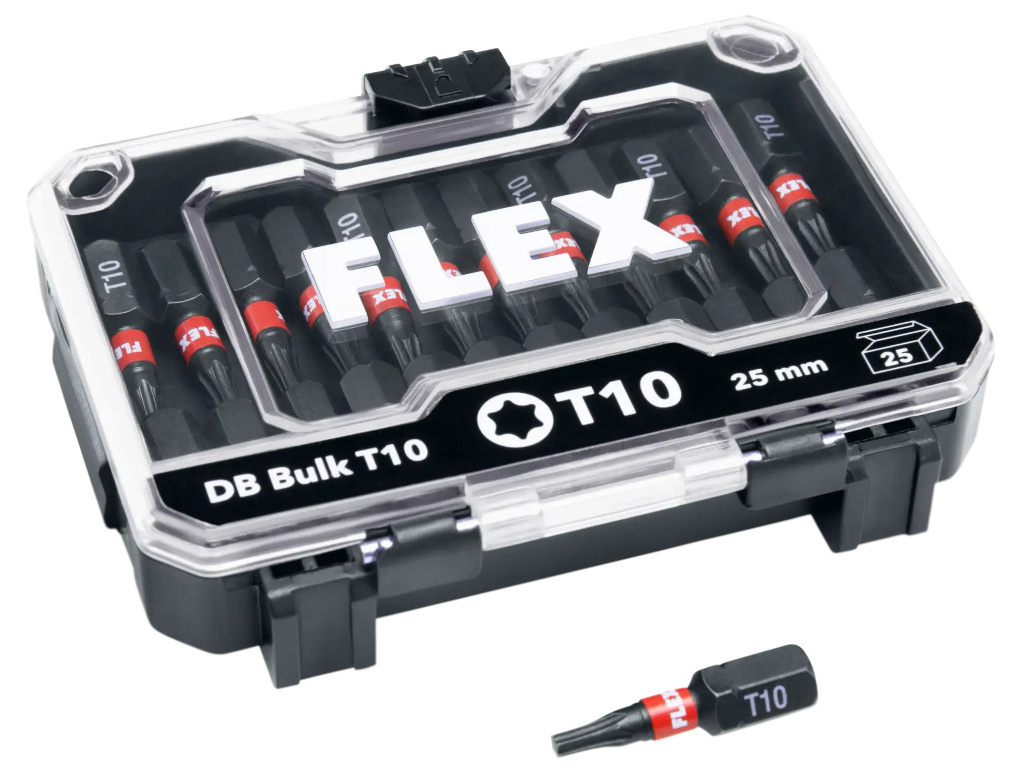 Flex DB Bulk T20 je sada kvalitních torzních bitů s Torx hlavou na montáž šroubů v kombinaci s klasickým nebo rázovým šroubovákem.