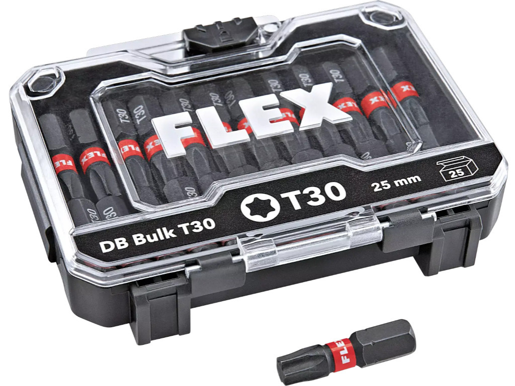 Flex DB Bulk T40 je sada kvalitních torzních bitů s Torx hlavou na montáž šroubů v kombinaci s klasickým nebo rázovým šroubovákem.