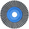Jemný lamelový kotouč na zahlazení otřepení na hraně obkladových prvků s citlivou povrchovou úpravou.