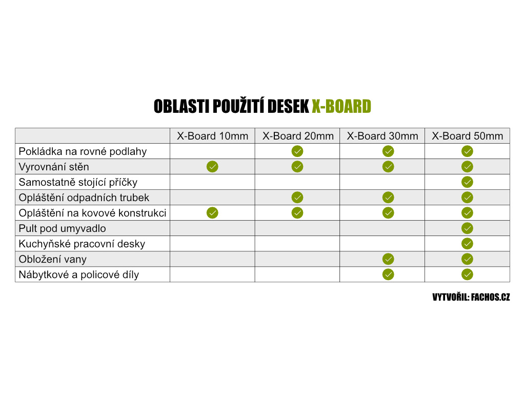 Codex X-Board je univerzální konstrukční deska vhodná pro vyrovnávání a izolaci stěn nebo podlah, a také jako náhrada sádrokartonových desek. Uplatní se i při opláštění závěsných WC modulů nebo při výrobě policových dílů. Zpracování a montáž desek zvládne každý zručný řemeslník.