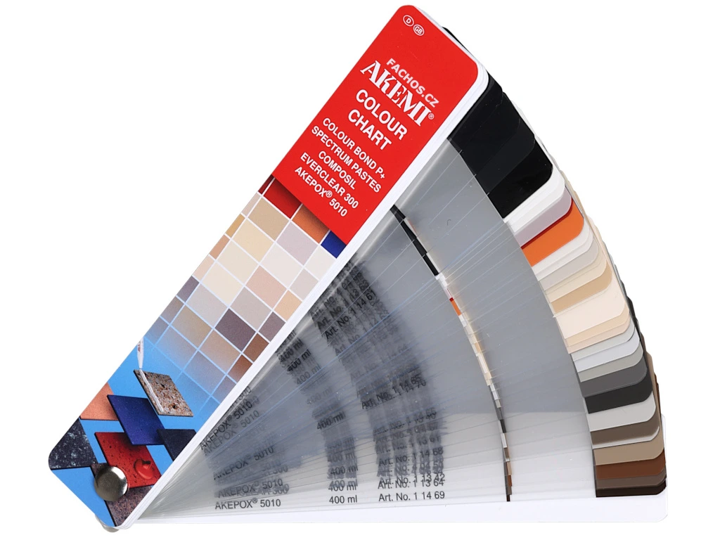 Vějířový vzorník barev vám usnadní výběr správného tmelu Akemi Colour Bond.