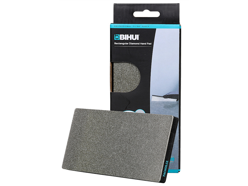 Bihui DHPS jsou diamantové destičky na ruční zábrus obkladů, dlažeb nebo kamene a nejčastěji se využívají na finální zahlazení otřepení po dělení obkladového prvku čistými řeznými kotouči. Velkou výhodou destičky je, že nemá obvodový rámeček, taže se s ní krásně dostanete do vnitřního rohu.