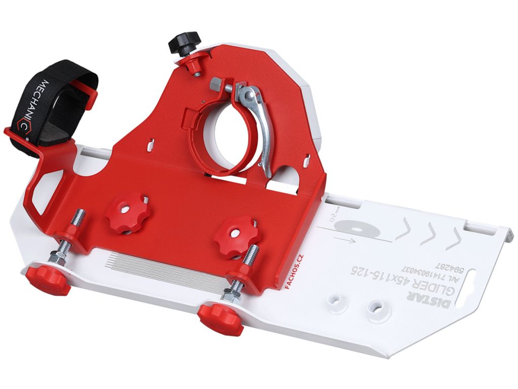 Distar Glider 45 využijete na podřezávání obkladů nebo dlažeb pod úhlem 45°. Modul má opravdu snadné nastavení rovinnosti řezu a vzdálenosti řezu od hrany s dodatečnou aretací. Pokud chcete doporučit kvalitní kotouč, tak by se jednalo o velmi čistý Distar Galaxy nebo výkonný Distar Edge Dry.