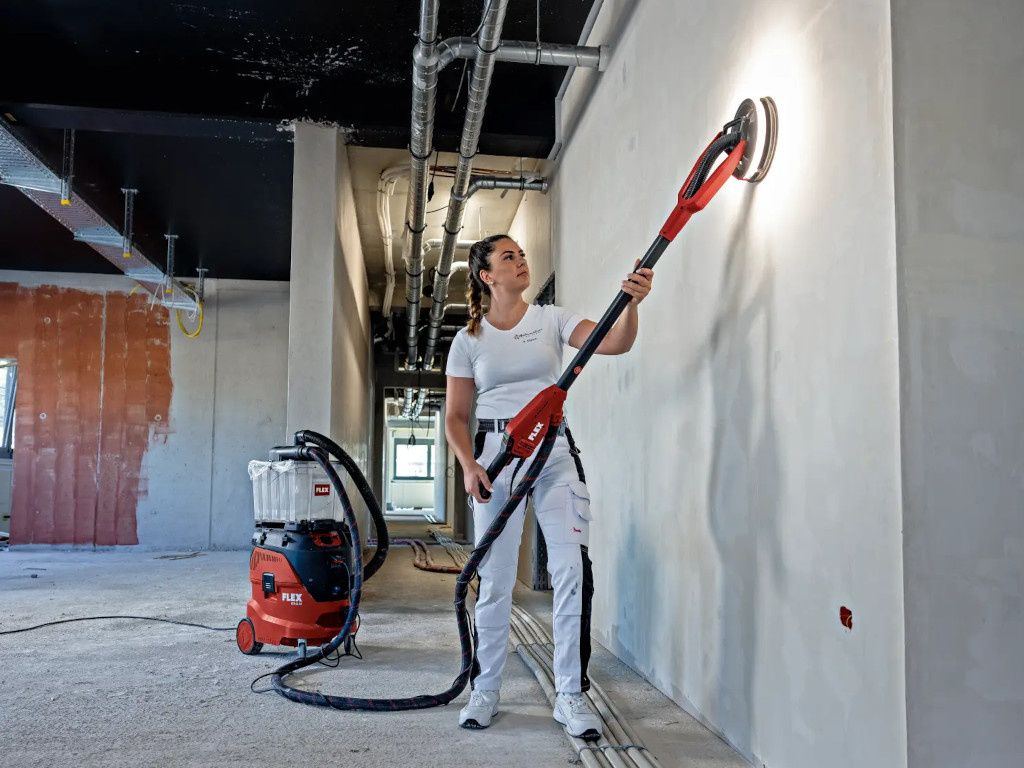 Flex WL 1000 GE 6 je prstencové LED světlo na přisvícení povrchupři broušení s žirafami od Flexu. Díky světlu uvidíte veškeré nedostatky a díky tomu je budete moci efektivně vybrousit ještě před výmalbou.