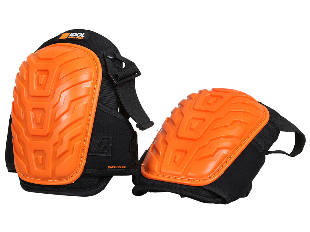Gelové nákoleníky s klasickým upínáním na suchý zip pod kolenem a s pružným páskem nad kolenem. Vnější plášť je chráněn plastovou skořepinou a uvnitř nákoleníků je gelová výplň pro pohodlnější klečení.