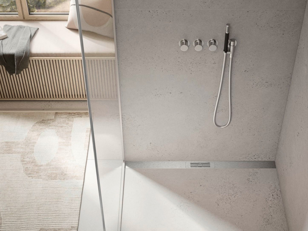 TeceLineo je odtokový žlábek do sprchy s možností zakrácení od 100cm do 40cm, díky čemu lze žlábek vložit mezi dvě stěny nebo mezi stěnu a sklo. Velkou výhodou také je, že se dá žlábek umístit do prostoru sprchy nebo k zadní stěně.