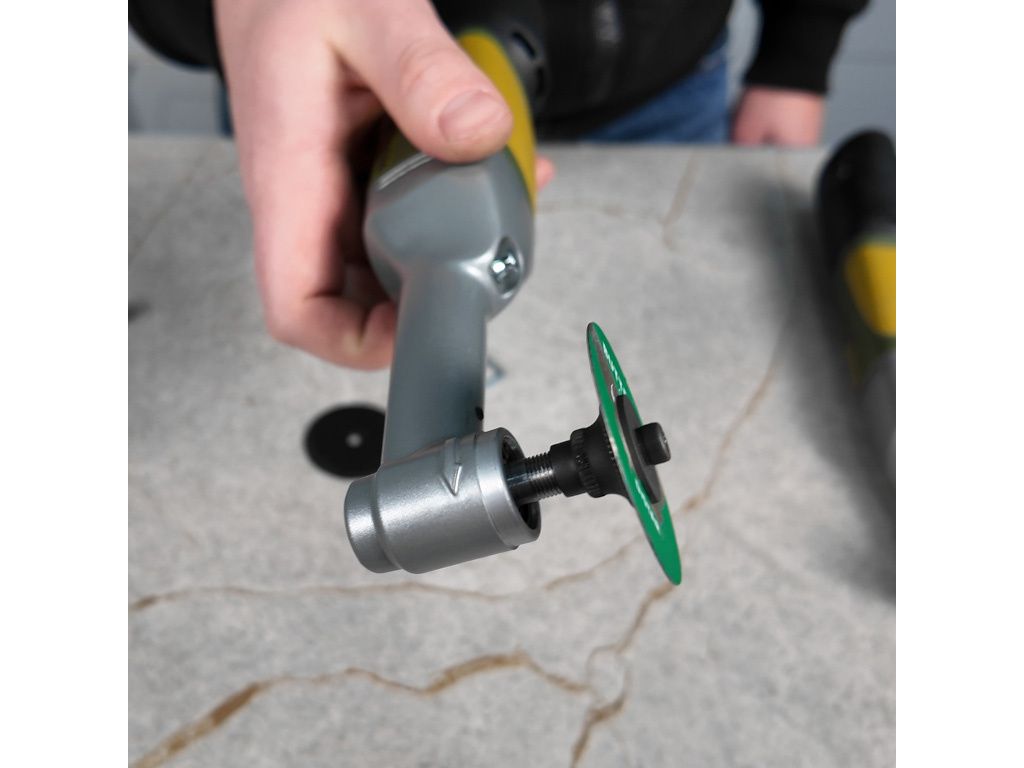 Speciální multifunkční adaptér pro mikroúhlové vrtačky a brusky, například od Proxxonu nebo Bihui. Adaptér dokáže upnout a zároveň zesílit řezné kotoučky typu Distar Butterfly nebo lze na tom samém adaptéru použít unašeč se suchým zipem k uchycení brusných padů, například Mini Coolpadů od Distaru.