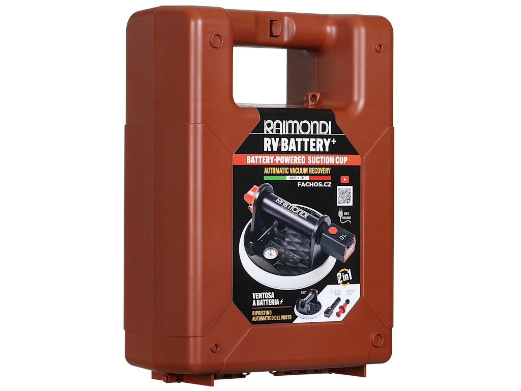 Raimondi RV Battery je profesionální vakuová přísavka, kterou lze použít buď s manuální pumpou nebo s elektrickým pístem. Velkou výhodou je, že každou část přísavky lze v případě poškození vyměnit za novou.