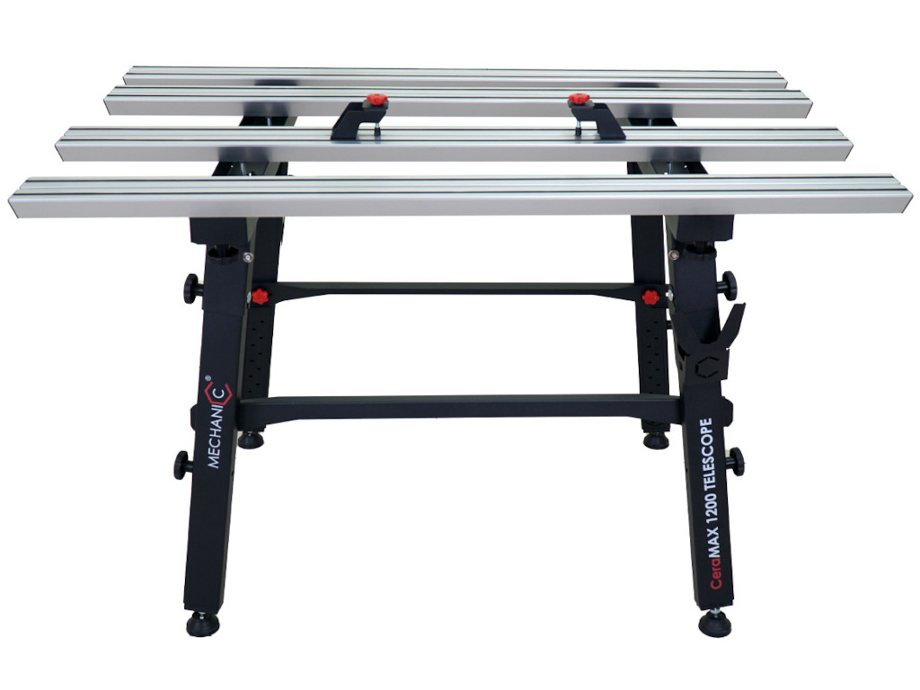 Profesionální stůl Ceramax Telescope 2.0 na opracování velkoformátových obkladů nebo dlažeb. Stůl lze naklopit, což usnadňuje podřezávání hrany pod úhlem. Navíc lze nastavit výškově, takže bude vyhovovat řemeslníkům všech výšek :).