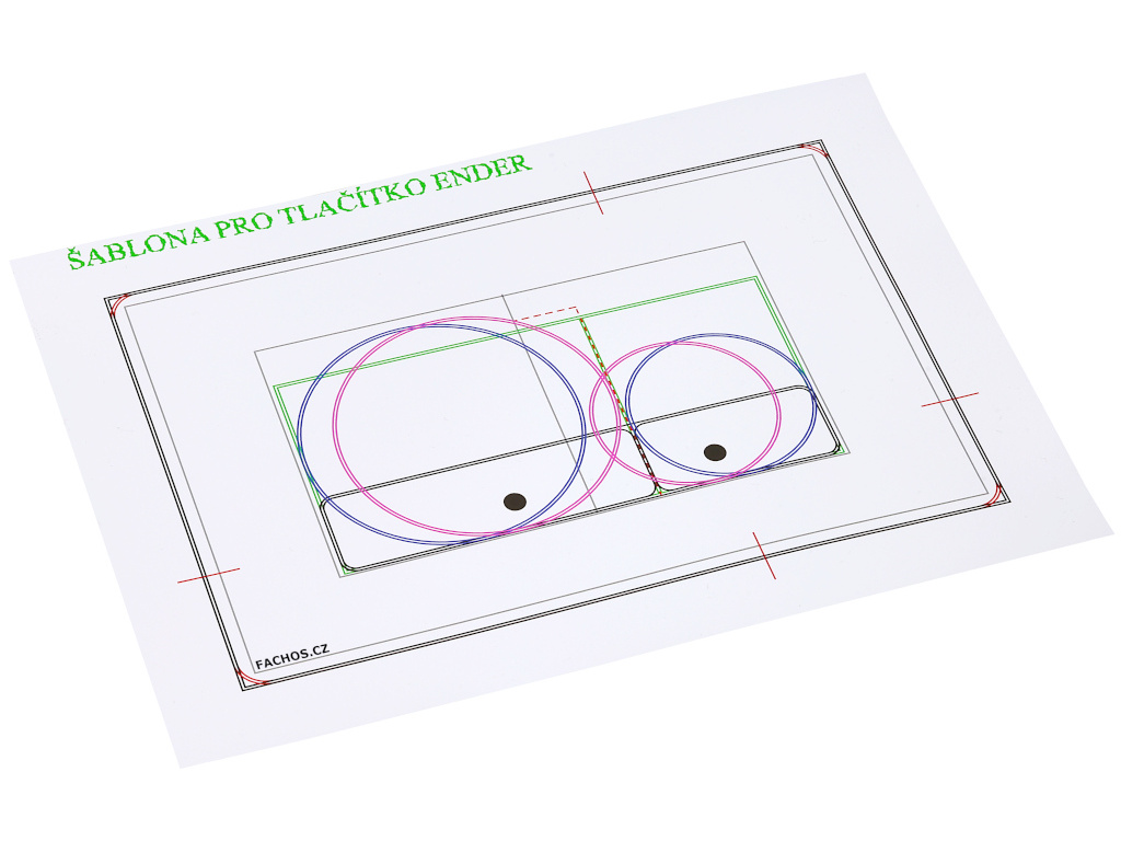 Speciální samolepící šablona, která je kompatibilní s modulem Ender. Šablona usnadní vyřezávání tlačítek pod obklad v případě, že si řezy a frézování realizujete svépomocí.