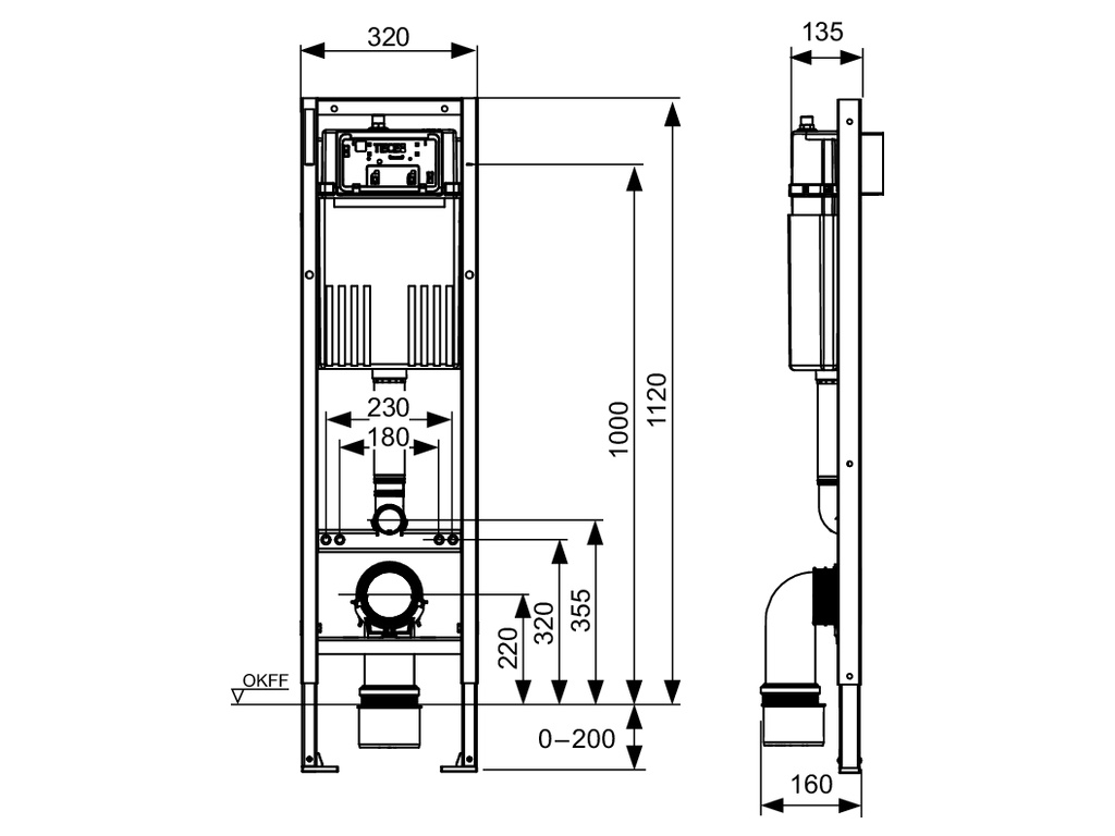 Obsah balení: Závěsný modul, 2x závitová tyč M12 s maticemi, odpadní koleno WC DN 90